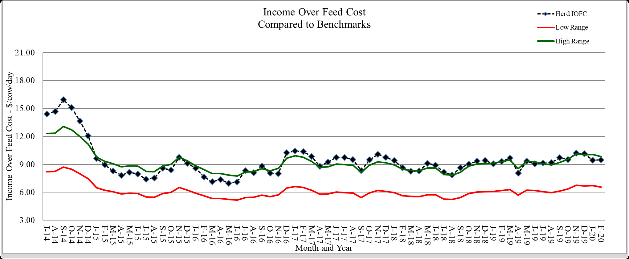 Monitoring must include an economic component to determine if a management strategy is working or not. For the lactating cows, income over feed cost is a good way to check that feed costs are in line for the level of milk production.