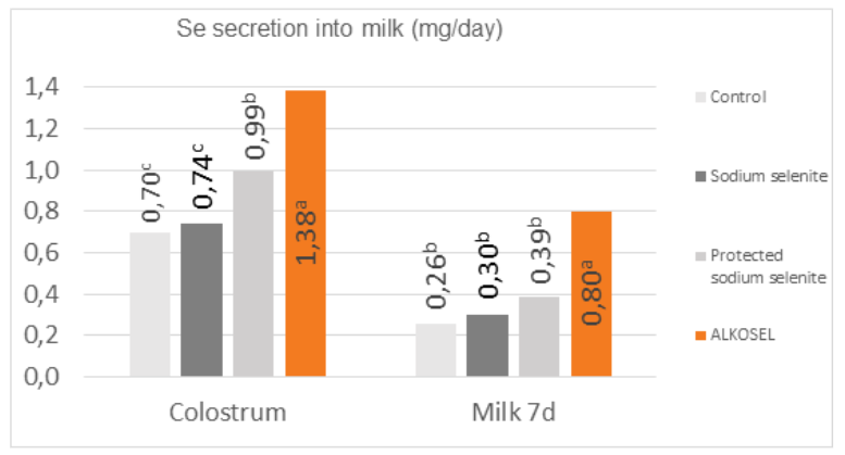 A research trial conducted in 2017 at the National Research Institute of Animal Production in Poland evaluated the effects of ALKOSEL, a bioavailable organic selenium source, as compared to sources of inorganic selenium at the same concentration (protected and unprotected sodium selenite). Cows were supplemented from 93 days before calving until 7 days into lactation.